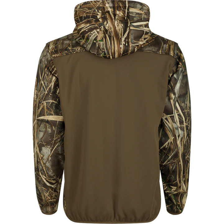 Our MST Endurance Soft Shell Hoodie has softshell interlock material, Magnattach™ Call Pocket on the left chest, Lower zipped pockets, Mesh-lined sleeves for easy on/off, a deep quarter-zip neck, Fleece-lined hood with drawstring and elastic waist hem.