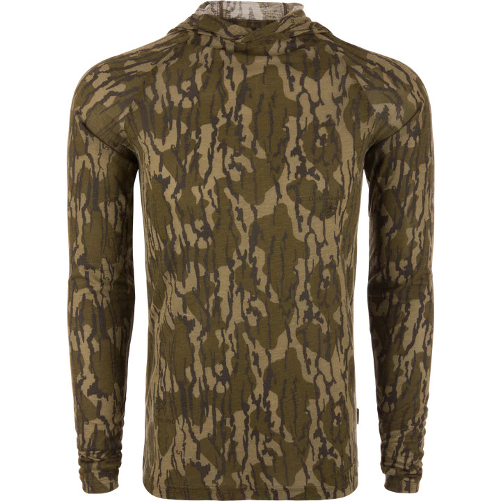The Drake Bamboo Long Sleeve Hoodie is the softest hoodie we have ever created. The fabric is the key: 70% Bamboo Viscose mixed with 30% polyester in a silky jersey knit. The Bamboo Hoodie is lightweight at 140 GSM, making it a year-round hoodie. It is naturally odor-resistant and has a UPF of 20 with a built-in 3-piece unconstructed hood for extra sun protection. It is quick-drying and has built-in stretch for comfort. Plus, it is offered in three of our Exclusive Old School Camo patterns. Soon to be your favorite Drake Old School Camo Hoodie.