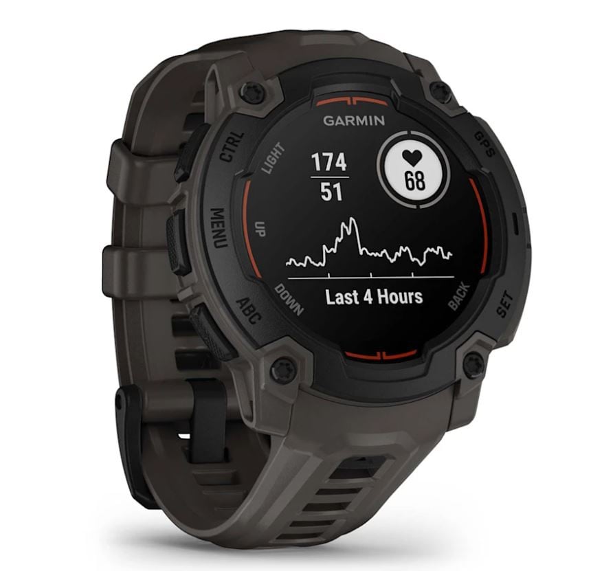 The Instinct E smartwatch is 10 ATM water-rated and engineered to MIL-STD-810 for thermal and shock resistance.
