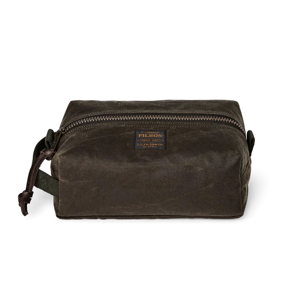 Our Tin Cloth Travel Kit is a lighter-weight dopp kit that carries travel essentials for a lifetime of journeys. It's made with our iconic waxed canvas that's protected foresters, sportsmen, and tradesmen from harsh weather, brush, and abrasion for more than a century. It's fully lined with nylon to protect contents, and secures with a heavy-gauge metal YKK® zipper. The cotton-webbing grab handle doubles as a loop for hanging. Bridle Leather zipper pull.