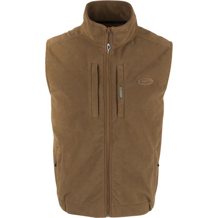 The MST Solid Windproof Layering Vest stops biting winds to keep you comfortable. The windproof barrier doesn't add bulk, and the jacket has a high warmth-to-weight ratio. It features a vertical zippered chest pocket, a vertical magnetic chest pocket, and lower hand warmer pockets with zippered closures.